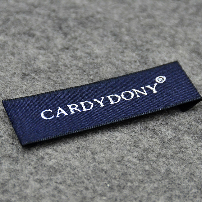 Etiqueta de producto, modelo Tidy Style, bordada con nombres y logo personalizado en distintos colores, en un material textil especial, adecuado para los artículos de vestir y más. Este modelo de etiqueta textil está hecho de materiales de alta calidad, utilizando las tecnologías más avanzadas en el campo del bordado digital a nivel industrial.