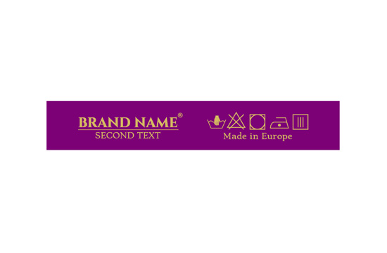Etiqueta de composición personalizada con signos de lavado y mantenimiento, y la Marca o logo, adecuada para cualquier producto textil, especialmente prendas de vestir. Este modelo de etiqueta textil se fabrica utilizando las tecnologías más avanzadas en el campo de la impresión digital en medios textiles. Las etiquetas están impresas en satén especial, por el método de transferencia térmica, con una calidad de impresión impresionante y alta resistencia al lavado.