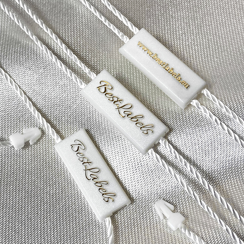 Sello personalizado de etiquetas de plástico ST-M132 para los productos fashion, como ropa, calzado, bolsos, joyas, accesorios, etc.