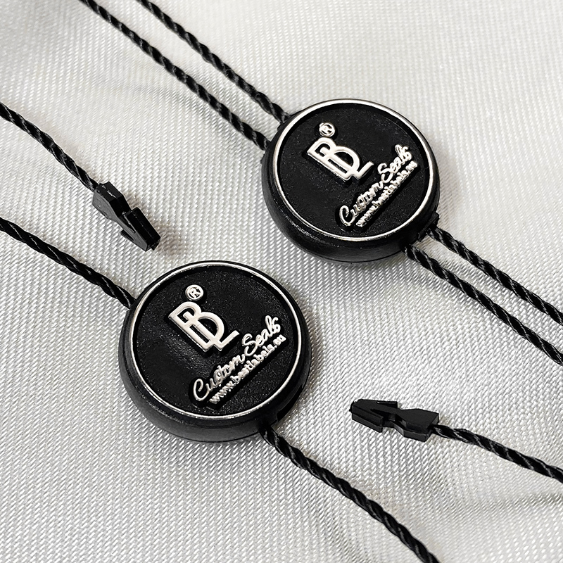 Sello de plástico ST-M86 con un diseño elegante, forma redonda, se puede personalizar en dos lados con el nombre de la marca o el emblema/marca registrada y es ideal para productos como ropa, bolsos, calzado. Este modelo de sello está hecho de materiales de alta calidad, utilizando las tecnologías más avanzadas en el campo.